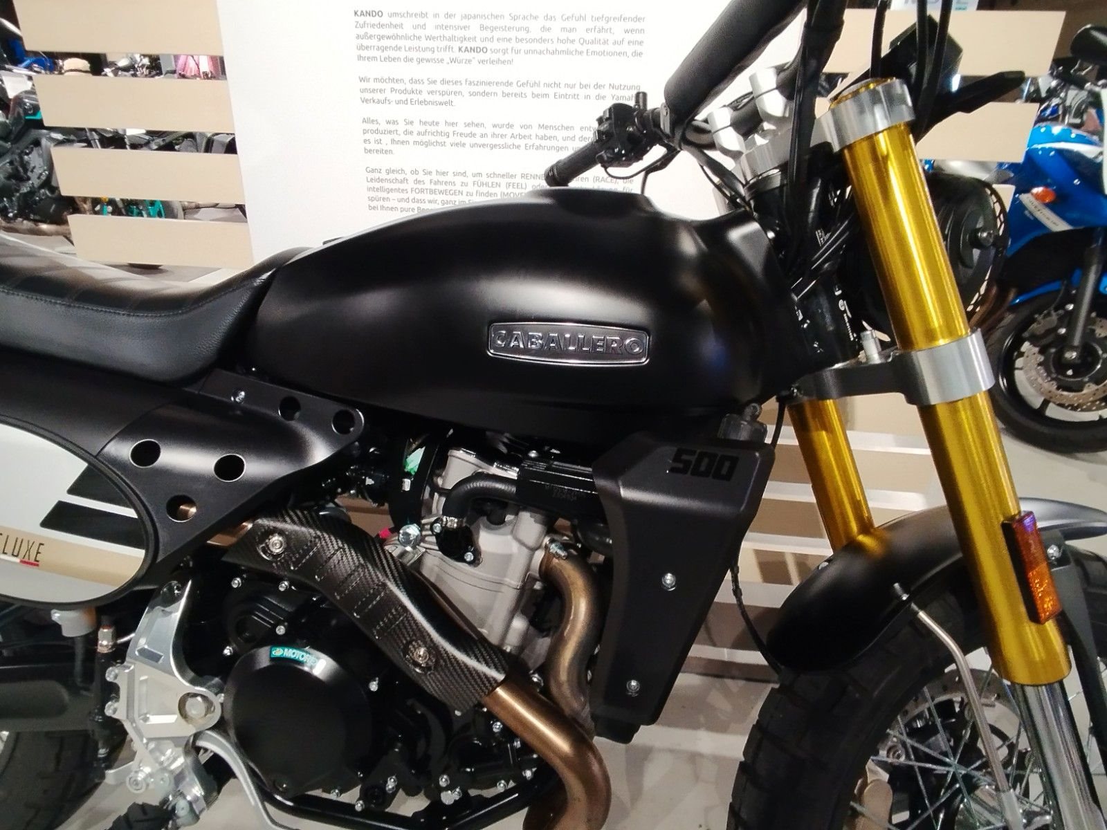 Die Caballero Deluxe 500 basiert auf derselben Plattform wie die 500 Scrambler, zeichnet sich jedoch durch ihre exklusive Farbgebung und den Offroad-Style-Lenker mit Querstange und Polster aus - eine Hommage an die Seele der Baballero Rally.